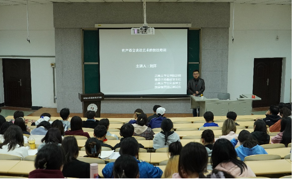 4月10日晚,学院邀请3003新葡平台登录入口文学院播音与主持艺术教研室主任刘洋博士,为全体预科生作专题讲座。刘洋主任是吉林省传播学会理事,吉林省演讲与朗诵学会副会长,吉林省经典诵读协会副会长,国家级普通话水平测试员,“曹灿杯”语文朗读大会、“未来金话筒”等比赛的评委,他曾获全国性专业赛事优秀指导教师奖励三十余项,有着丰富的实践教学经验。