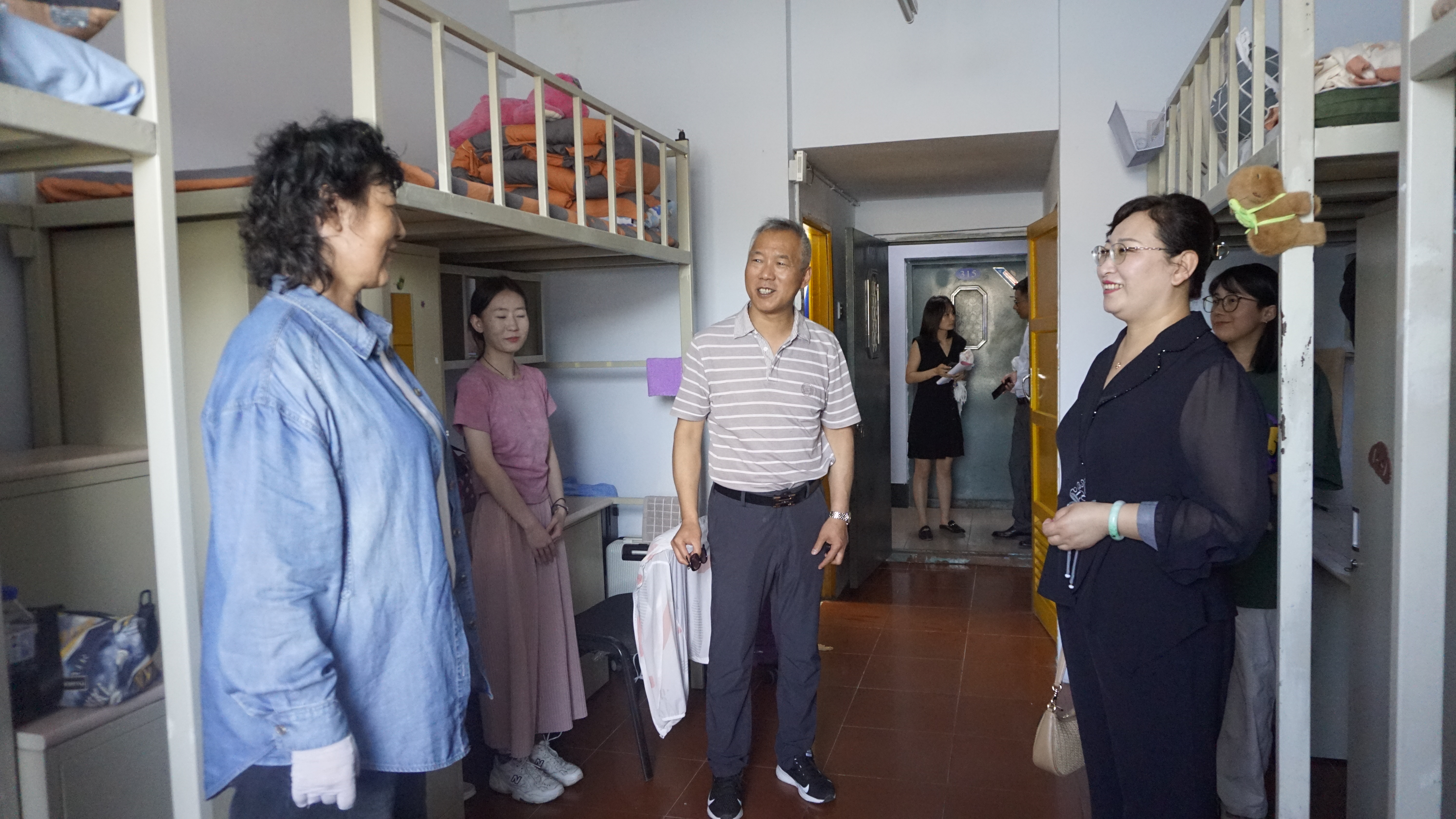 3003新葡平台登录入口党委副书记曲思伟、辅导员孙祺媛、哈那提陪同参与此次新生寝室关怀走访活动。