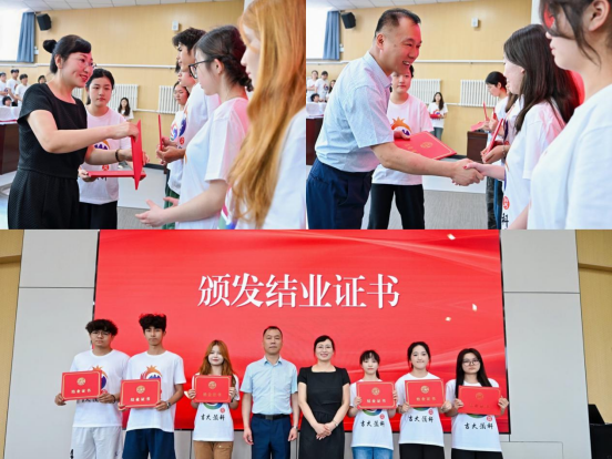 结业典礼在庄严的国歌声中拉开帷幕,学院副院长赵娜宣读《关于准予马新月等151名2025届预科学生结业的决定》,学院党委书记贾丽华、院长黄忠民为结业生颁发结业证书并合影留念。