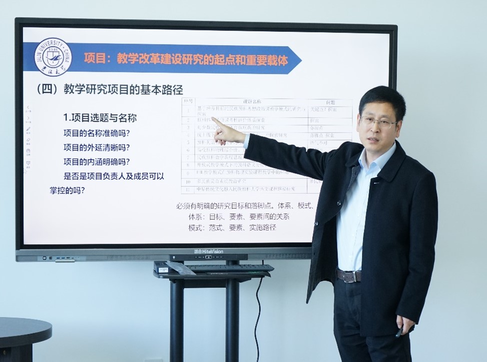 金祥雷主任此次分享的主题是《教学改革研究项目立项与总结提升》。他指出预科教育作为本科教育的一种特殊形式,开展有针对性的教学改革研究是十分必要的。教学改革研究项目是教学改革与建设的重要依托,从教学实践到理论的升华有利于促进学科发展,同时教师的科研能力也可以得到提升。金主任还结合具体的教改项目案例,讲解了教学研究项目的基本逻辑、基本方式、基本路径,如何规范填写项目申报书和如何形成解决教学问题的系统化改革方案。
